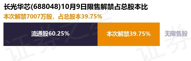 长光华芯(688048)7007万股限售股将于10月9日解禁,占总股本39.75%