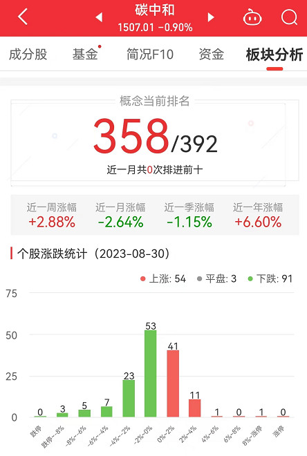 中国经济网北京8月30日讯 今日,碳中和板块整体跌幅0.90%,其中,54只股票上涨,3只股票平盘,91只股票下跌。