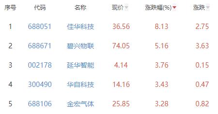 其中,佳华科技、碧兴物联、延华智能、华自科技、金宏气体位列板块涨幅前五位,涨幅分别为8.13%、5.16%、3.76%、3.43%、3.28%。