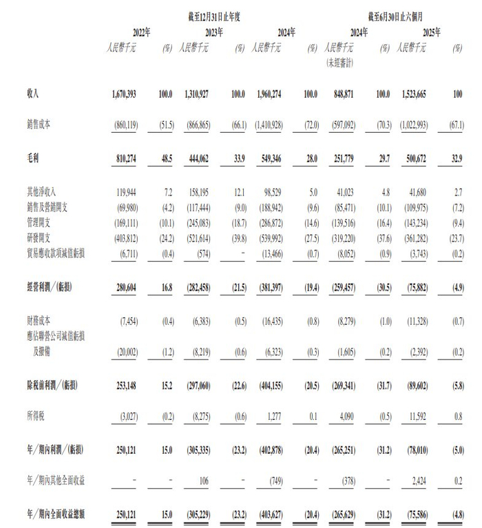 财务方面,于2022年度、2023年度、2024年度、2024年及2025年截至6月30日止六个月,纳芯微实现收入分别约为16.70亿元、13.11亿元、19.60亿元、8.49亿元、15.24亿元人民币;同期,年/期内全面收益总额分别约为2.50亿元、-3.05亿元、-4.04亿元、-2.66亿元、-7558.6万元人民币。
