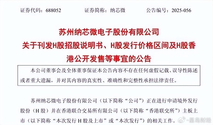 日前,纳芯微发布公告称,今年10月,公司收到了中国证监会出具的境外发行上市备案通知书,11月28日,公司在香港联交所网站刊登并派发了H股招股说明书,预计将于今年12月8日上午9时开始在香港联交所挂牌交易。