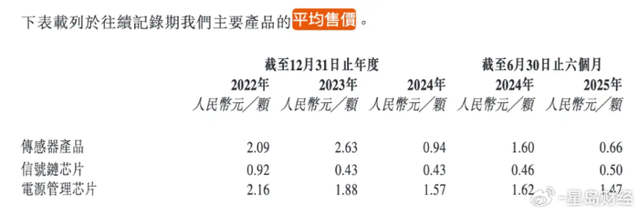 产品价格方面,公司主要产品价格全线下跌,2022年-2024年及2025年上半年,电源管理芯片从2.16元/颗降至1.47元/颗;传感器芯片则从2.09元/颗大幅降至0.66元/颗;信号链芯片平均售价从0.92元/颗降至0.5元/颗。