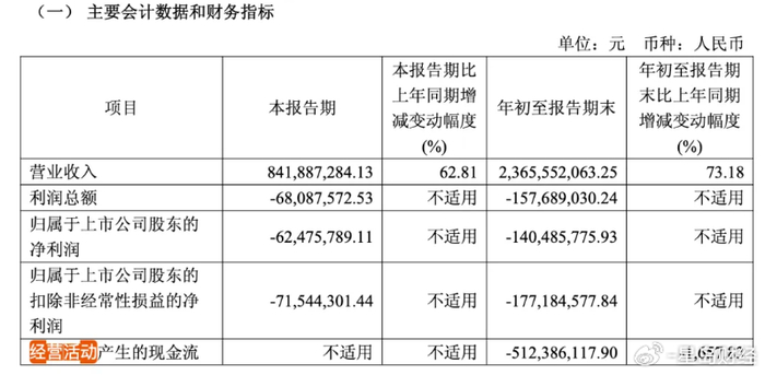 需要注意的是,公司的现金流状况并不乐观。据招股书,截至今年上半年末,公司经营活动所用现金流量净额为-3.07亿元,而去年同期为839.8万元,由正转负。今年三季报显示,今年前三季度,公司经营活动产生的现金流量净额为-5.12亿元,同比大幅下降1657.83%。