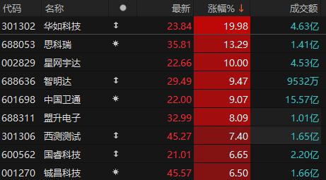 上证报中国证券网讯 11月27日上午交易时段,国防军工板块持续走强。截至10时53分,华如科技、星网宇达涨停。思科瑞涨超13%,智明达、中国卫通涨逾9%,盟升电子、西测测试等跟涨。
