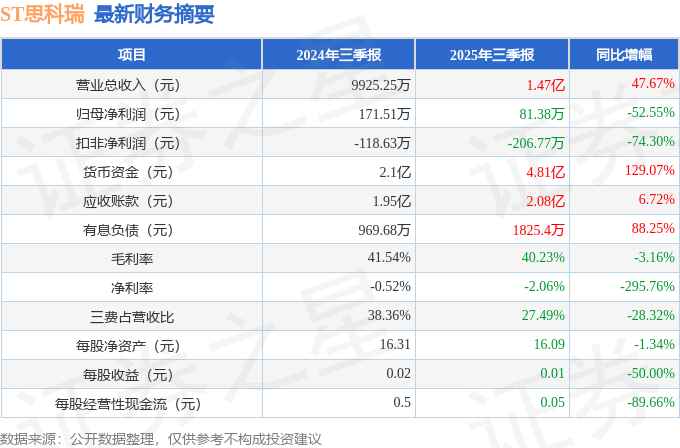 ST思科瑞(688053)2025年三季报简析:增收不增利,公司应收账款体量较大