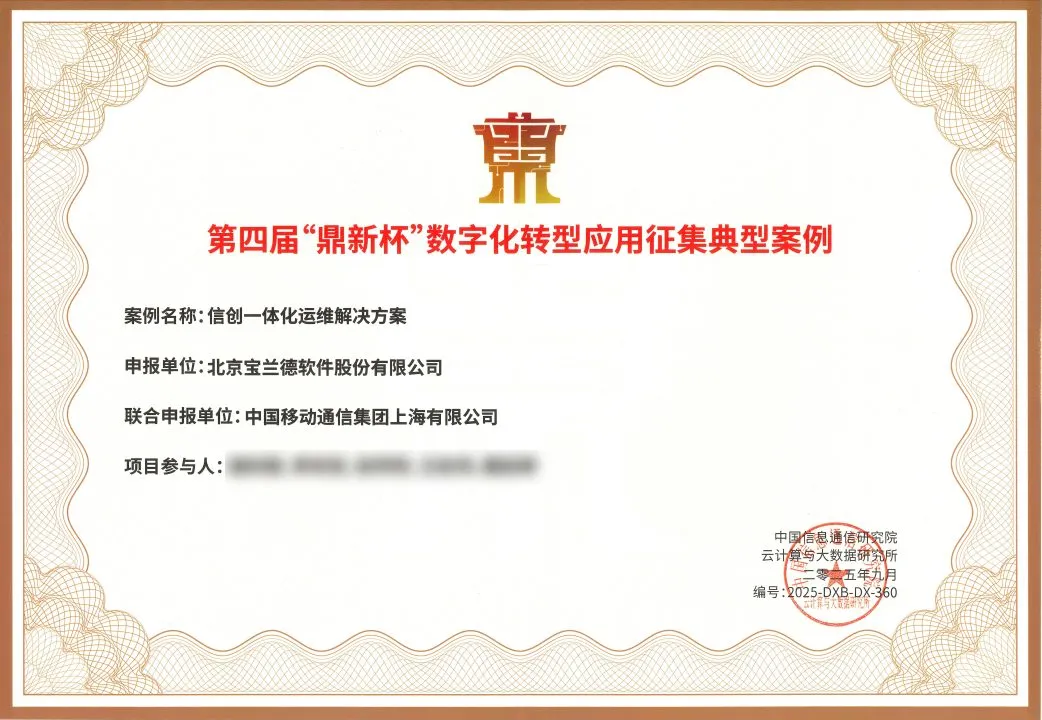宝兰德与中国移动通信集团上海有限公司联合申报的“信创一体化运维解决方案”,直面信创战略推进中的核心挑战——运维保障。
