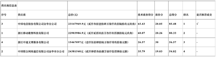 标项一:中国移动通信集团浙江有限公司金华分公司 20493557.1 元(中)。