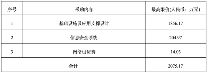标项一:基础设施及应用支撑设计;信息安全系统;网络租赁;预算 20751700 元。