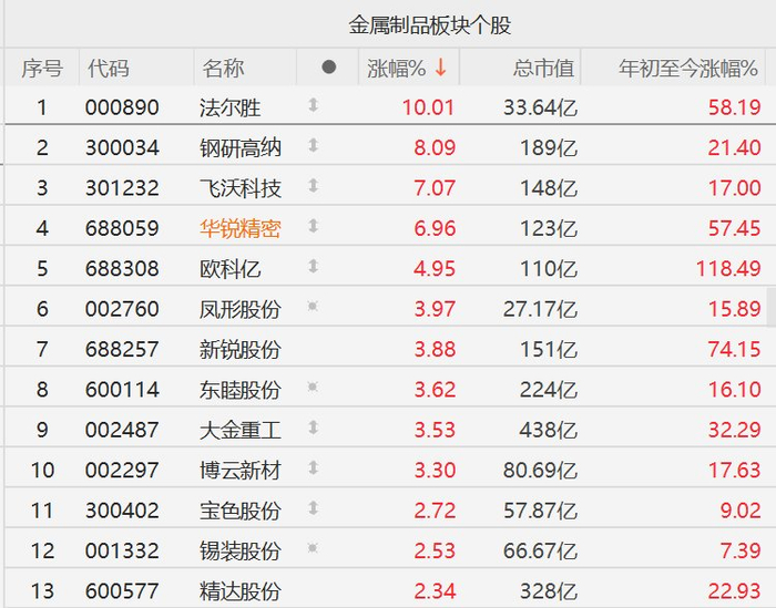 A股异动丨金属制品股集体走强,华锐精密三个月发4次涨价函