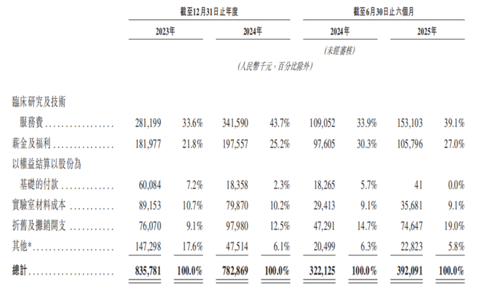 到了2024年,在ADC药物、双抗等前沿领域,研发竞争已进入白热化阶段之时,迈威生物却缩减研发开支至7.83亿元。2025年上半年为3.92亿元,同比增加21.74%。