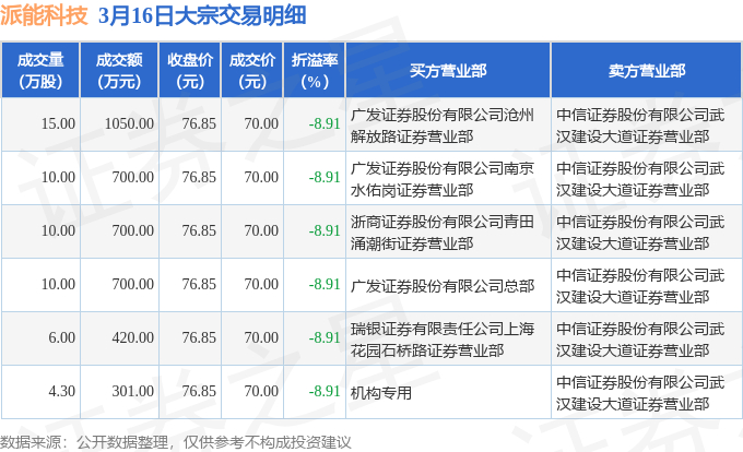 证券之星消息,3月16日派能科技发生大宗交易,交易数据如下: