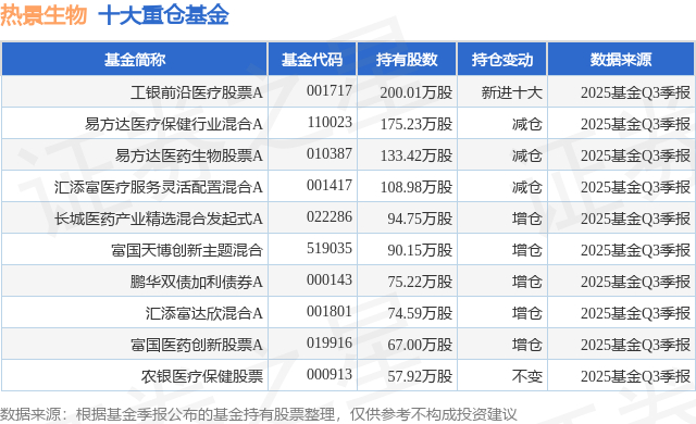 重仓热景生物的前十大公募基金请见下表: