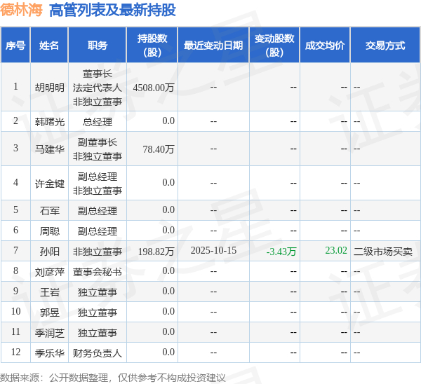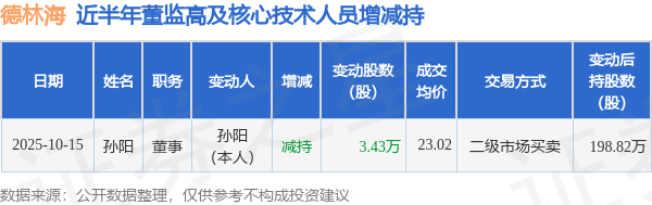 德林海:10月15日高管孙阳减持股份合计3.43万股