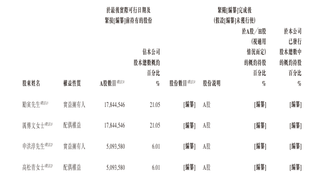 截至2026年2月16日,励先生直接持有17,844,546股A股,占公司注册资本约21.05%。根据上市规则及指南第1.1C章,励先生被视为公司单一最大股东。此外,申洪淳先生及潘旻先生分别持有公司6.01%和0.68%的股份。