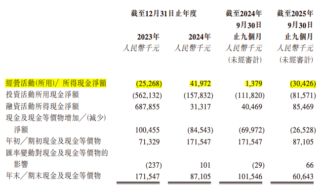 多重因素叠加之下,华依科技现金流压力持续凸显。招股书数据显示,2023 年公司经营活动产生的现金流量净额为净流出 2527 万元,2025 年前九个月经营活动现金流净流出规模扩大至 3043 万元,持续的现金流出对公司日常运营、项目投入以及债务偿付均构成压力,这也是公司选择启动港股上市、拓宽外部融资渠道的重要原因。