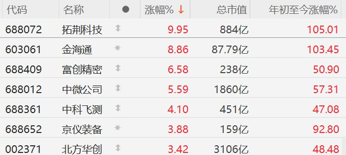 A股半导体设备股走强,拓荆科技涨10%创历史新高