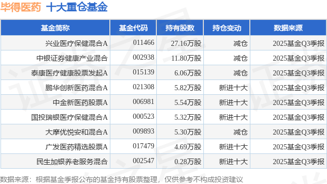 重仓毕得医药的公募基金请见下表:
