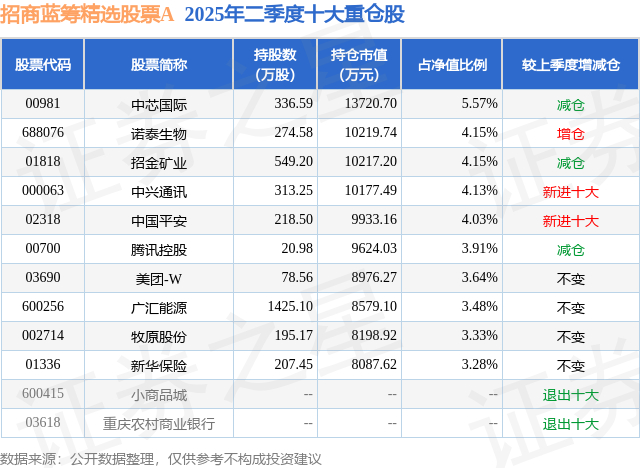 根据2025基金半年报公募基金重仓股数据,重仓该股的公募基金共18家,其中持有数量最多的公募基金为招商基金的招商蓝筹精选股票A。招商蓝筹精选股票A目前规模为23.88亿元,最新净值0.8839(9月12日),较上一交易日上涨0.19%,近一年上涨65.87%。该公募基金现任基金经理为王景。王景在任的基金产品包括:招商制造业混合A,管理时间为2015年12月2日至今,期间收益率为189.01%;招商品质升级混合A,管理时间为2021年3月5日至今,期间收益率为-22.11%;