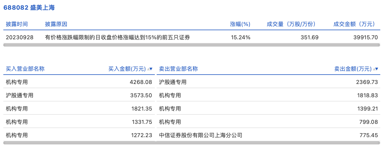 9月28日,盛美上海今日涨15.24%,全天换手率达4.71%,振幅达19.56%。龙虎榜数据显示,营业部席位合计净买入5104.61万元。其中,机构买入8693.41万元,卖出4017.11万元,合计净买入4676.3万元。此外,沪股通专用分别买入3573.50万元;沪股通专用、中信证券上海分公司分别卖出2369.73万元、775.45万元。