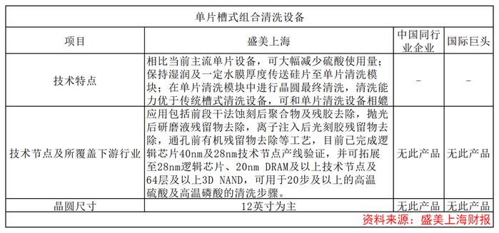 单片槽式组合清洗设备目前也已完成逻辑芯片40nm及28nm技术节点产线验证。盛美上海更是在公司财报中表示,国内同行企业和国际龙头尚未有此类产品,可见其产品的差异化优势。