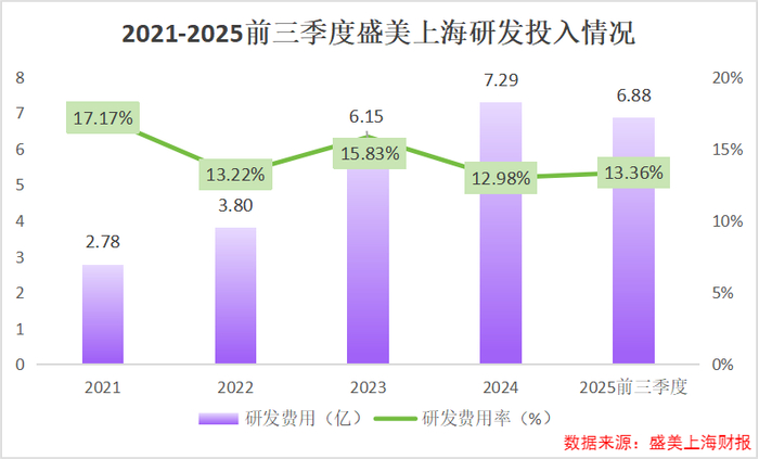 2021到2024年盛美上海研发费用从2.78亿元增加到7.29亿元。2025年继续加大研发投入,前三季度公司研发费用达到6.88亿元,与此同时,公司研发费用率较上年也提高了0.4个百分点。