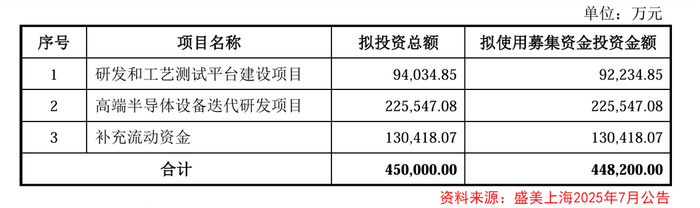 2025年7月,盛美上海向特定对象募集资金44.82亿元,实际募集资金达44.35亿元。