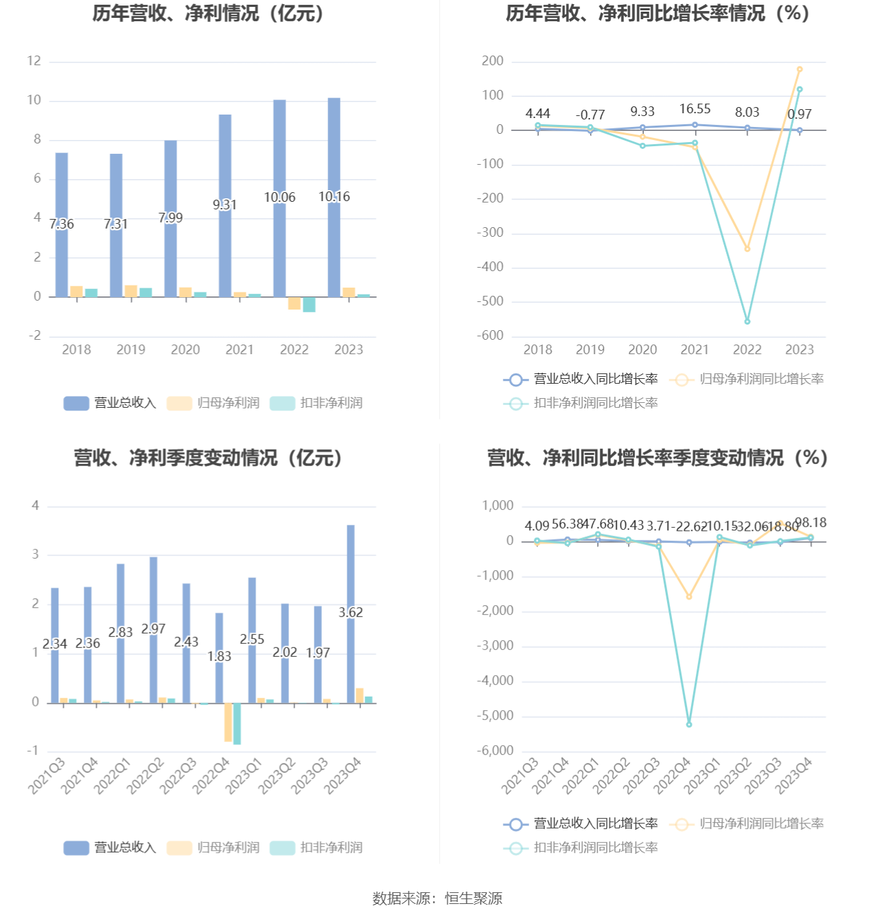 数据显示,2023年公司加权平均净资产收益率为5.56%,较上年同期增长12.48个百分点;公司2023年投入资本回报率为4.88%,较上年同期增长13.29个百分点。