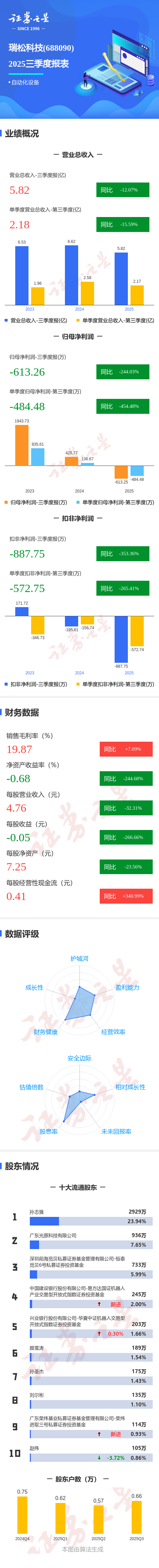 图解瑞松科技三季报:第三季度单季净利润同比下降454.49%