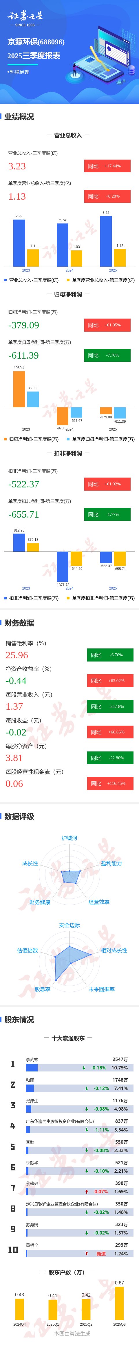 图解京源环保三季报:第三季度单季净利润同比下降7.70%