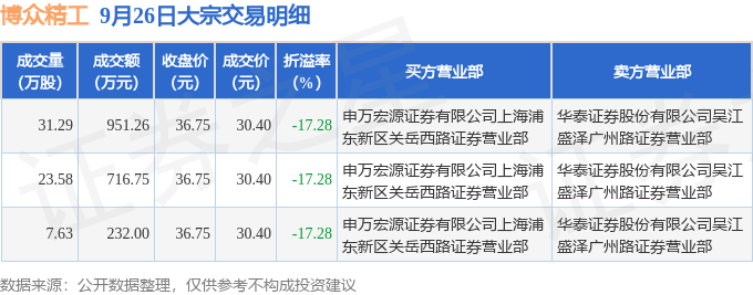 9月26日博众精工现3笔折价17.28%的大宗交易 合计成交1900.01万元