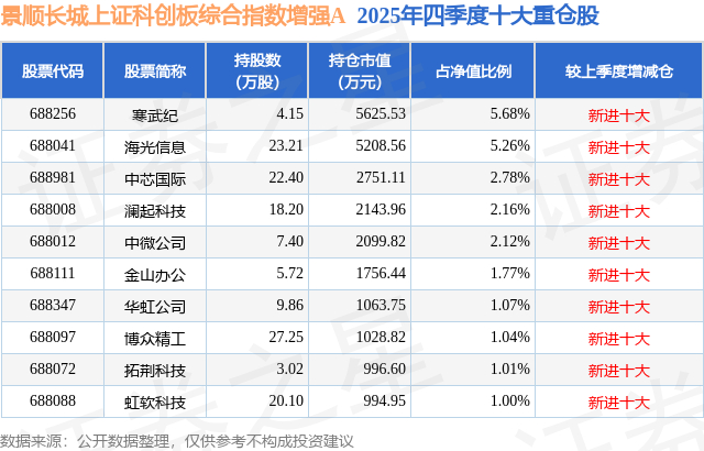 景顺长城上证科创板综合指数增强A的前十大重仓股如下: