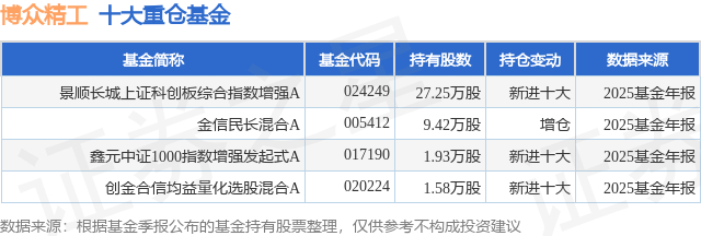 重仓博众精工的公募基金请见下表:
