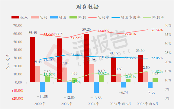 收入分别约为人民币55.45亿、53.71亿、59.26亿、30.16亿、33.30亿,2025年前6月同比+10.40%;