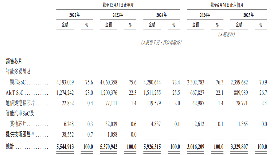 公司是无晶圆半导体公司,专注于智能多媒体及显示SoC、AIoT SoC、通信与连接芯片以及智能汽车SoC。截至2025年6月30日,公司的芯片累计出货量超10亿颗。