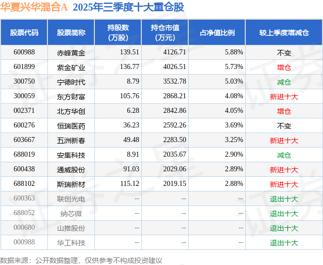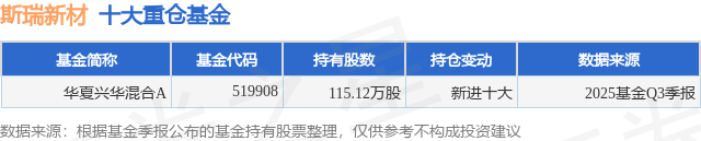 根据2025基金Q3季报公募基金重仓股数据,重仓该股的公募基金共1家,其中持有数量最多的公募基金为华夏基金的华夏兴华混合A。华夏兴华混合A目前规模为7.02亿元,最新净值3.232(12月26日),较上一交易日上涨1.0%,近一年上涨27.7%。该公募基金现任基金经理为阳琨。