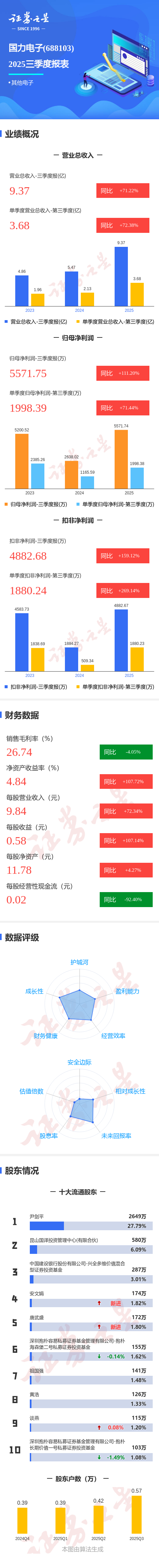 图解国力电子三季报:第三季度单季净利润同比增长71.45%