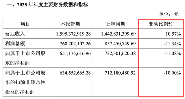 2月27日晚间,重组蛋白企业锦波生物(920982.BJ)披露2025年业绩快报,一份“增收不增利”的成绩单让市场意外。数据显示,2025年公司实现营业收入15.95亿元,同比增长10.57%;但归母净利润6.51亿元,同比下降11.08%;扣非净利润6.35亿元,同比下降10.9%。这是锦波生物近五年来首次出现净利润下滑。