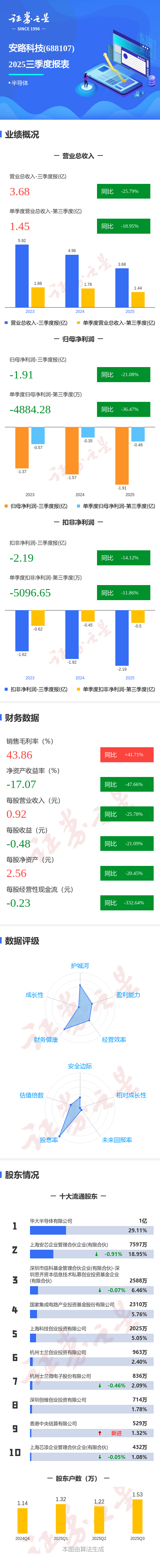 图解安路科技三季报:第三季度单季净利润同比下降36.47%