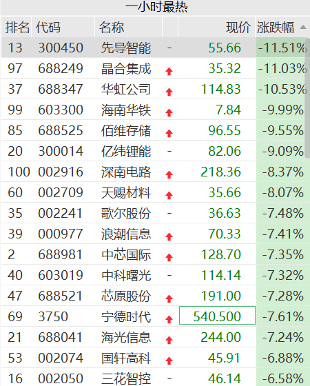 ﮵硢оƬȫÏ߻ص÷£¡¶«Ð¾¹É·Ýµø13%£¬ÄþµÂʱ´úµø³¬6%