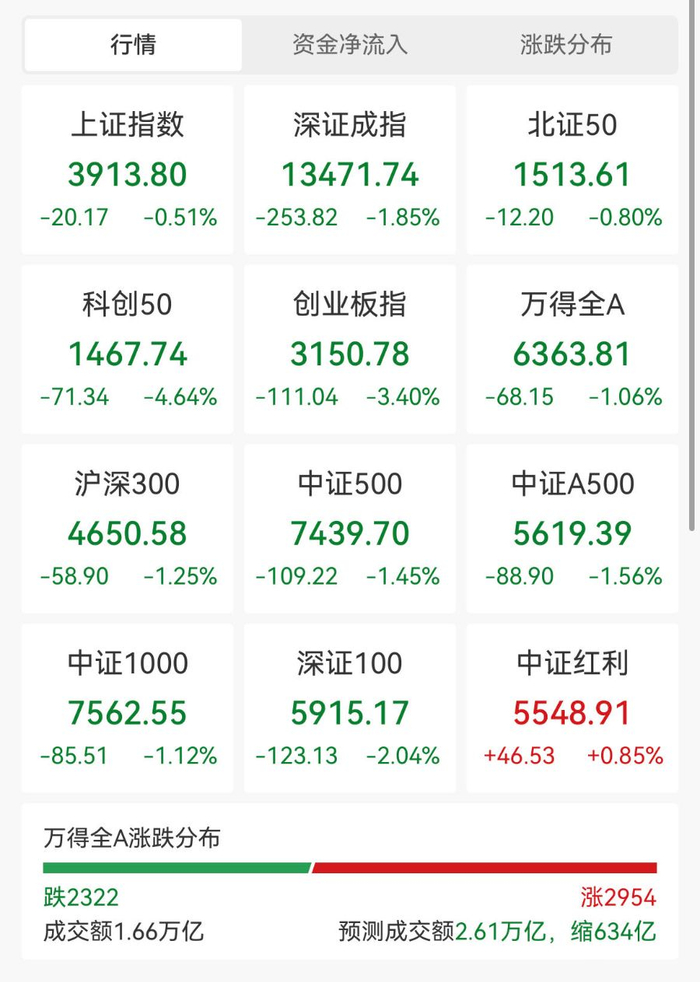 10ÔÂ10ÈÕ£¬Èý´óÖ¸Êý¼¯ÌåµÍ¿ª£¬½ØÖÁÎçÅÌ£¬ÉÏÖ¤Ö¸Êýµø0.51%£¬ÉîÖ¤³ÉÖ¸µø1.85%£¬´´Òµ°åÖ¸µø3.4%¡£Êг¡³¬2300¼Ò¸ö¹Éϵø£¬³É½»¶î1.66ÍòÒÚ£¬Ô¤¼Æ³É½»¶îÉÏÒ»½»Ò×ÈÕͬÆÚËõÁ¿634ÒÚÔª¡£