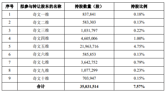 出让方委托中国国际金融股份有限公司(以下简称“中金公司”)组织实施本次询价转让。截至2025年3月28日,出让方所持首发前股份的数量、占公司总股本比例情况如下:
