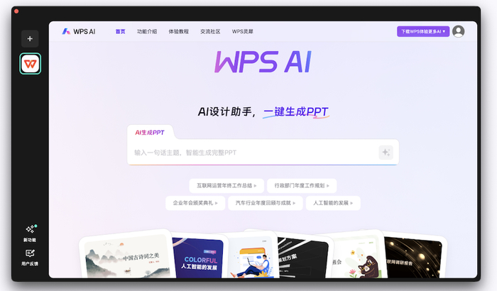 WPS AIPPT是WPS AI 3.0的核心功能之一。用户可以像聊天样与AI进行多轮沟通、生成大纲,二次精调模板、单页和版式,如“第三页和第五页顺序调整一下”“第六页再增加一个实际案例”;此外,用户还可独立选中和编辑文本框、图片、表格等组件,并随时使用AI生成图片,真正实现“所想即所改,所改即所得”,改变了传统AI生成的PPT无法反复修改的痛点。