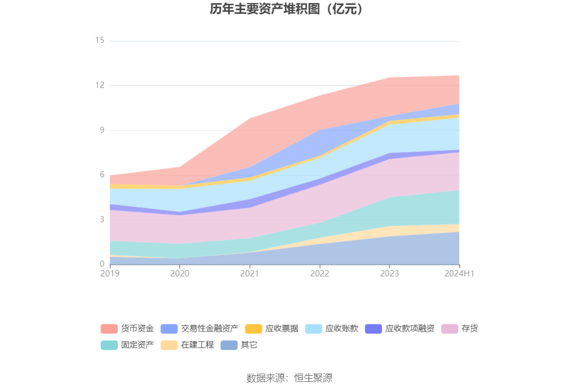 资产重大变化方面,截至2024年上半年末,公司货币资金较上年末减少27.01%,占公司总资产比重下降5.69个百分点;交易性金融资产较上年末增加114.66%,占公司总资产比重上升3.00个百分点;固定资产较上年末增加18.73%,占公司总资产比重上升2.71个百分点;应收款项融资较上年末减少58.88%,占公司总资产比重下降1.92个百分点。