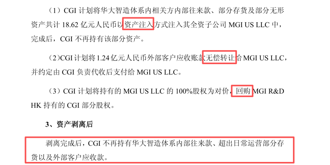 其次,本次出售除了上述保证核心主权完整保留以外,在资产剥离方面,华大智造也进行了精细处理——