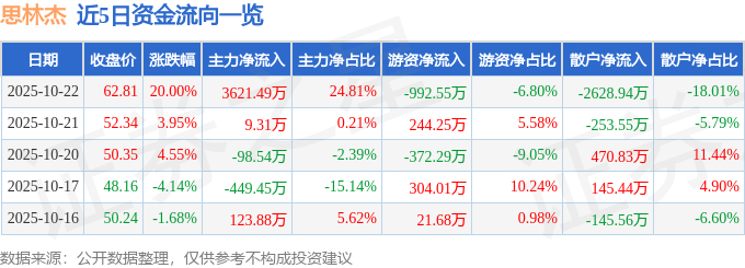 10月22日的资金流向数据方面,主力资金净流入3621.49万元,占总成交额24.81%,游资资金净流出992.55万元,占总成交额6.8%,散户资金净流出2628.94万元,占总成交额18.01%。