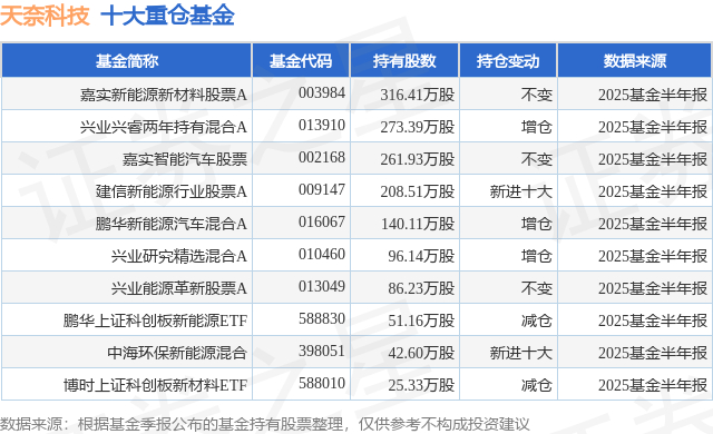 根据2025基金半年报公募基金重仓股数据,重仓该股的公募基金共20家,其中持有数量最多的公募基金为嘉实基金的嘉实新能源新材料股票A。嘉实新能源新材料股票A目前规模为20.59亿元,最新净值2.7744(10月9日),较上一交易日上涨1.47%,近一年上涨69.7%。该公募基金现任基金经理为姚志鹏 熊昱洲。姚志鹏在任的基金产品包括:嘉实智能汽车股票,管理时间为2016年4月30日至今,期间收益率为198.25%;嘉实环保低碳股票,管理时间为2018年3月21日至今,期间收益率为112.48%;嘉实产业先锋混合A,管理时间为2020年7月21日至今,期间收益率为19.3%。熊昱洲在任的基金产品包括:嘉实新优选混合,管理时间为2021年8月26日至今,期间收益率为-8.59%;嘉实产业先锋混合A,管理时间为2022年7月13日至今,期间收益率为20.58%;嘉实全球创新龙头股票(QDII)人民币A,管理时间为2023年3月14日至今,期间收益率为36.73%。