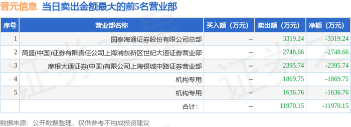 1月13日普元信息(688118)龙虎榜数据:游资章盟主上榜