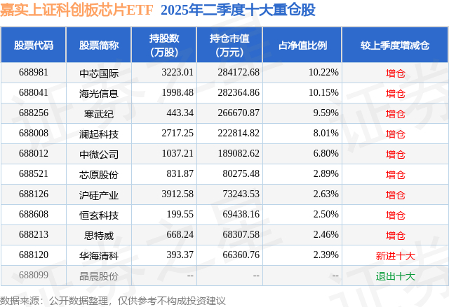 嘉实上证科创板芯片ETF的前十大重仓股如下: