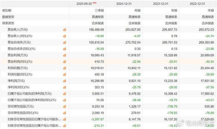 2025年前三季度,卓然股份实现营业收入15.65亿元,同比减少18.8%;归母净利润5955.51万元,同比增长74.55%。