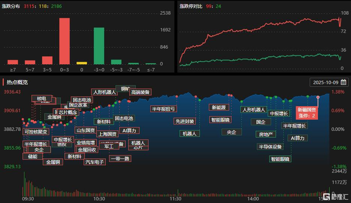 10月9日,国庆节后首个交易日,沪指时隔十年站上3900点,全市场成交额2.67万亿元。